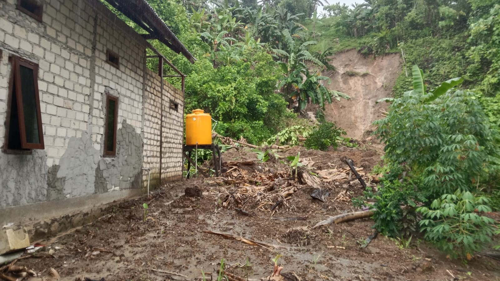 Selain banjir, hujan deras memicu longsor di sejumlah titik, seperti di belakang Kantor KPU, perumahan Kobeoser, hingga area belakang PLN. Salah satu rumah warga rusak di bagian dapur akibat tertimpa material longsor.