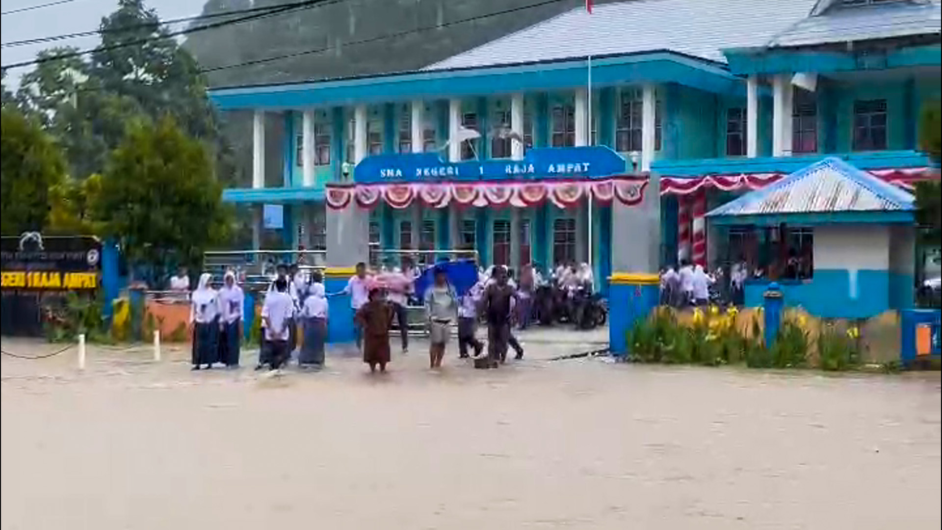 Halaman Kantor Distrik Kota Waisai pun berubah menjadi kolam besar akibat drainase tidak mampu menampung debit air. Ratusan motor milik siswa dan guru di SMAN 1 ikut terendam, memaksa pelajar menyeberangi genangan setinggi pinggang untuk menyelamatkan kendaraan mereka.