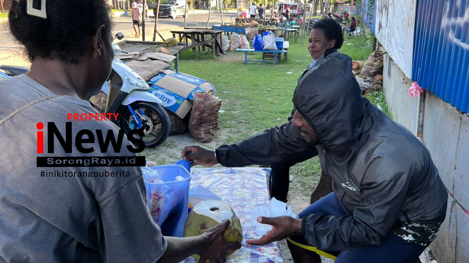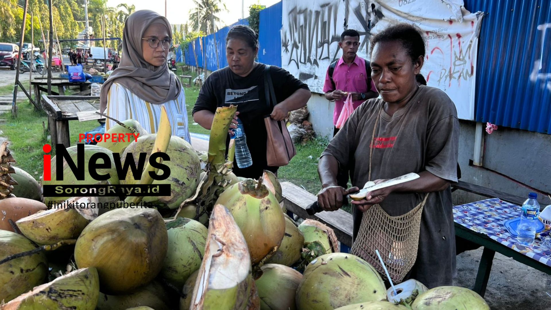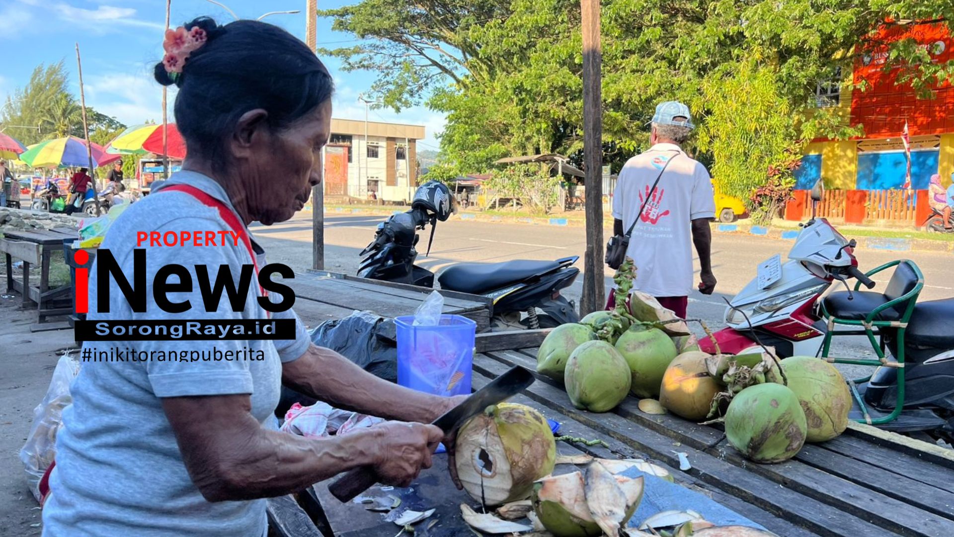 SORONG KOTA, iNewssorongraya.id - Sinar jingga senja di Pantai Tembok Berlin, Kota Sorong, perlahan mulai memantul di wajah keriput Angganita Burdam. Di bawah atap terpal berwarna biru sederhana, tangan tuanya tak henti menata kelapa muda yang baru diangkut dari Pulau Sop. Di balik setiap buah kelapa yang dijualnya, tersimpan kisah perjuangan panjang seorang ibu Papua yang menolak menyerah pada waktu dan perubahan.