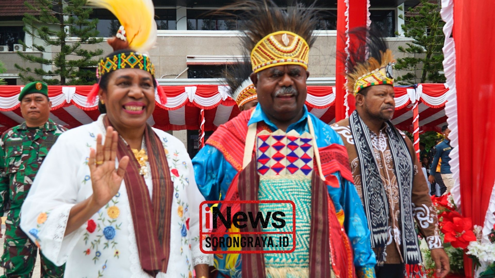 Pemerintah Provinsi Papua Barat Daya menggelar pengibaran bendera merah putih dengan sentuhan adat khas Papua yang semakin mempertegas identitas dan kebanggaan masyarakat Papua dalam memasuki era baru otonomi khusus.