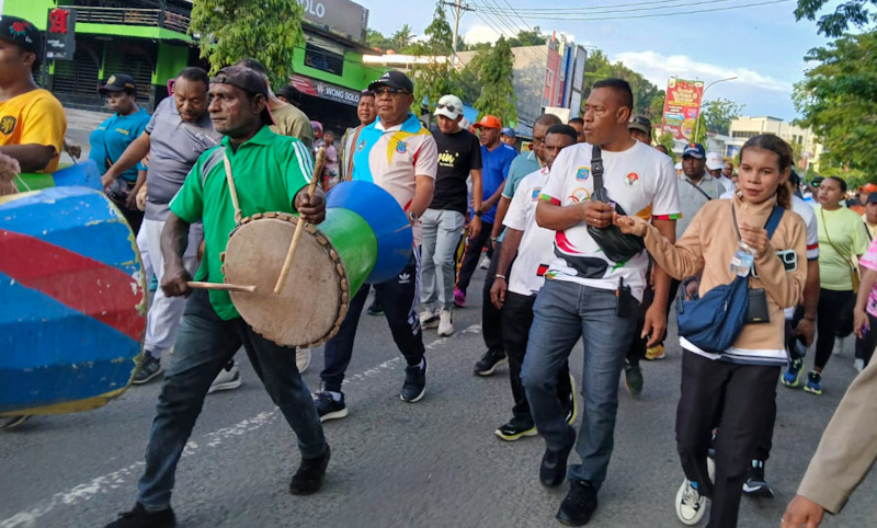 Kegiatan jalan sehat yang dilepas Wakil Gubernur Papua Barat Daya, Ahmad Nausrau, S.Pd.I, MM, sejak start di halaman Ramayana Mall Sorong hingga finis di Kantor Gubernur berlangsung lancar dan semarak. Ribuan peserta dari jajaran OPD, ASN, TNI-Polri, serta instansi lainnya mengikuti rute tersebut dengan pengawalan Sat Lantas Polresta Sorong Kota.