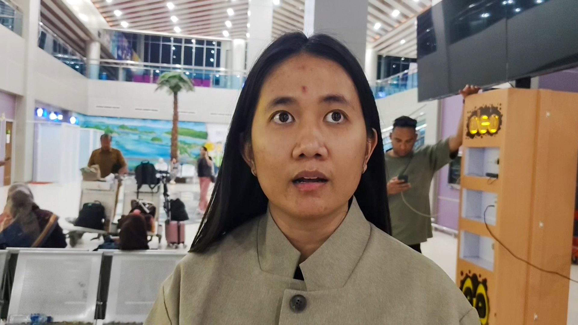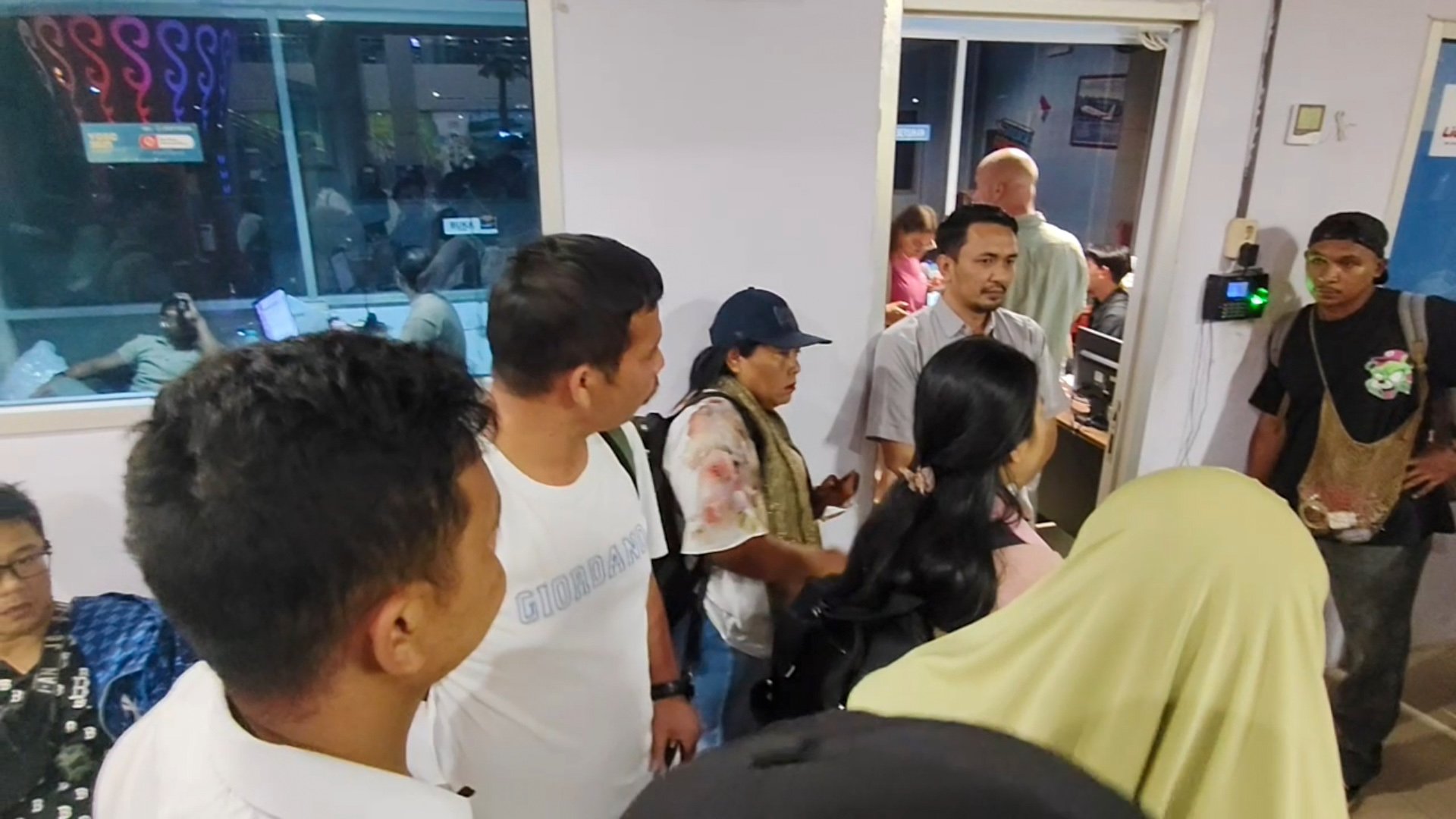 Kondisi di bandara tampak semrawut. Penumpang terlihat lelah, emosi, dan frustrasi, terutama mereka yang membawa anak kecil, lansia, serta penumpang dengan jadwal lanjutan dan keperluan mendesak.