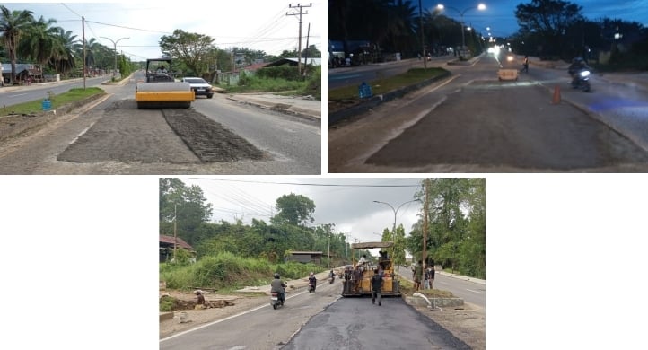 “Karena itu, Satker PJN I mengambil langkah tegas dengan membongkar aspal hingga lapis pondasi bawah di sejumlah titik, lalu mengganti struktur dasar menggunakan material Cement Treated Base (CTB) guna memperkuat daya dukung sebelum pelapisan ulang dilakukan,”bebernya.