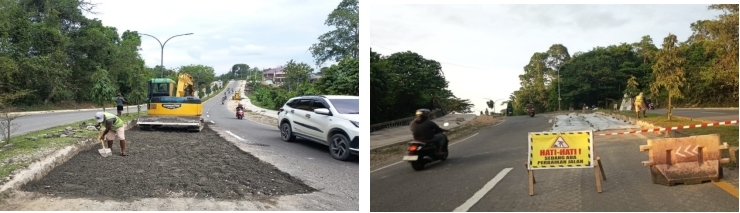 Adapun titik yang telah ditangani berada di Km 17+309, Km 17+170, Km 16+801, Km 16+700, dan Km 12+800 pada ruas dalam Kota Sorong.