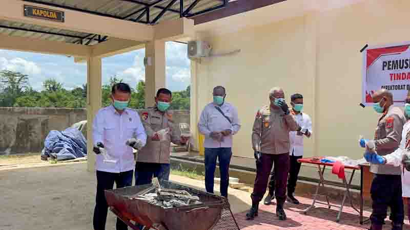 Proses pemusnahan dilakukan sesuai prosedur dengan cara dibakar dan dilarutkan, disaksikan langsung oleh para pejabat serta unsur penegak hukum yang hadir dalam kegiatan tersebut.