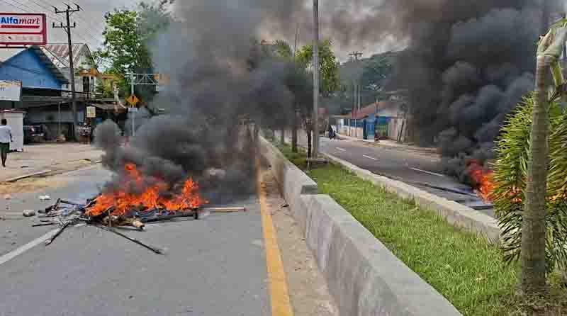 Dari pantauan iNewssorongraya, sejumlah warga dan kerabat korban sejak pagi memalang dua jalur jalan utama dengan membakar ban serta kayu di badan jalan. Aksi tersebut dipicu kemarahan keluarga setelah Franklin Delano Kambu ditemukan tewas di Kampung Banfot, Distrik Bamusbama, Kabupaten Tambrauw, Senin (9/3/2026).