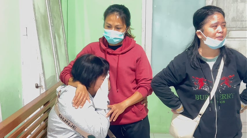 Setibanya di rumah sakit, suasana duka langsung menyelimuti area kamar jenazah. Keluarga korban yang telah menunggu tidak mampu menahan tangis saat peti jenazah diturunkan dari kendaraan.