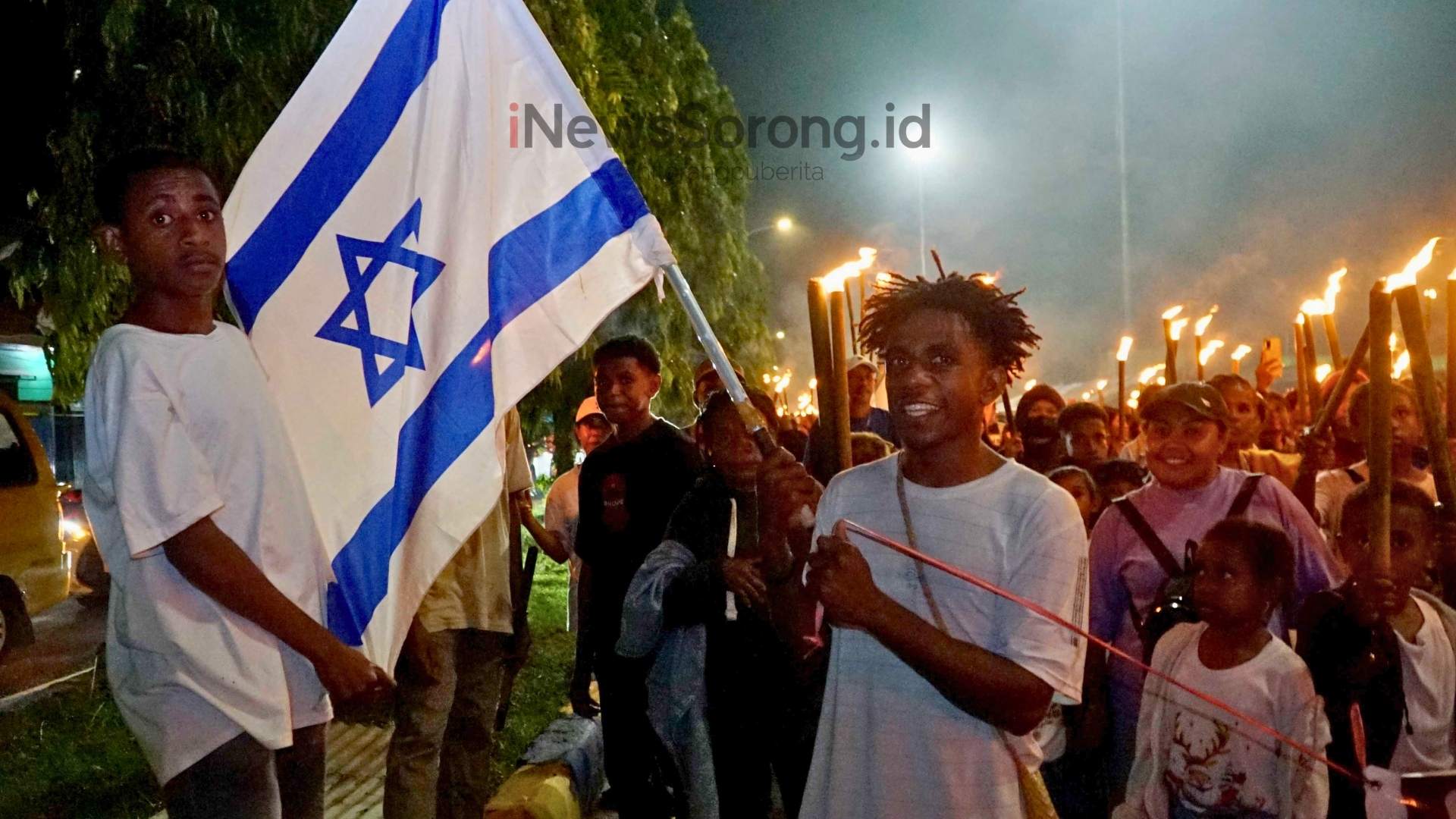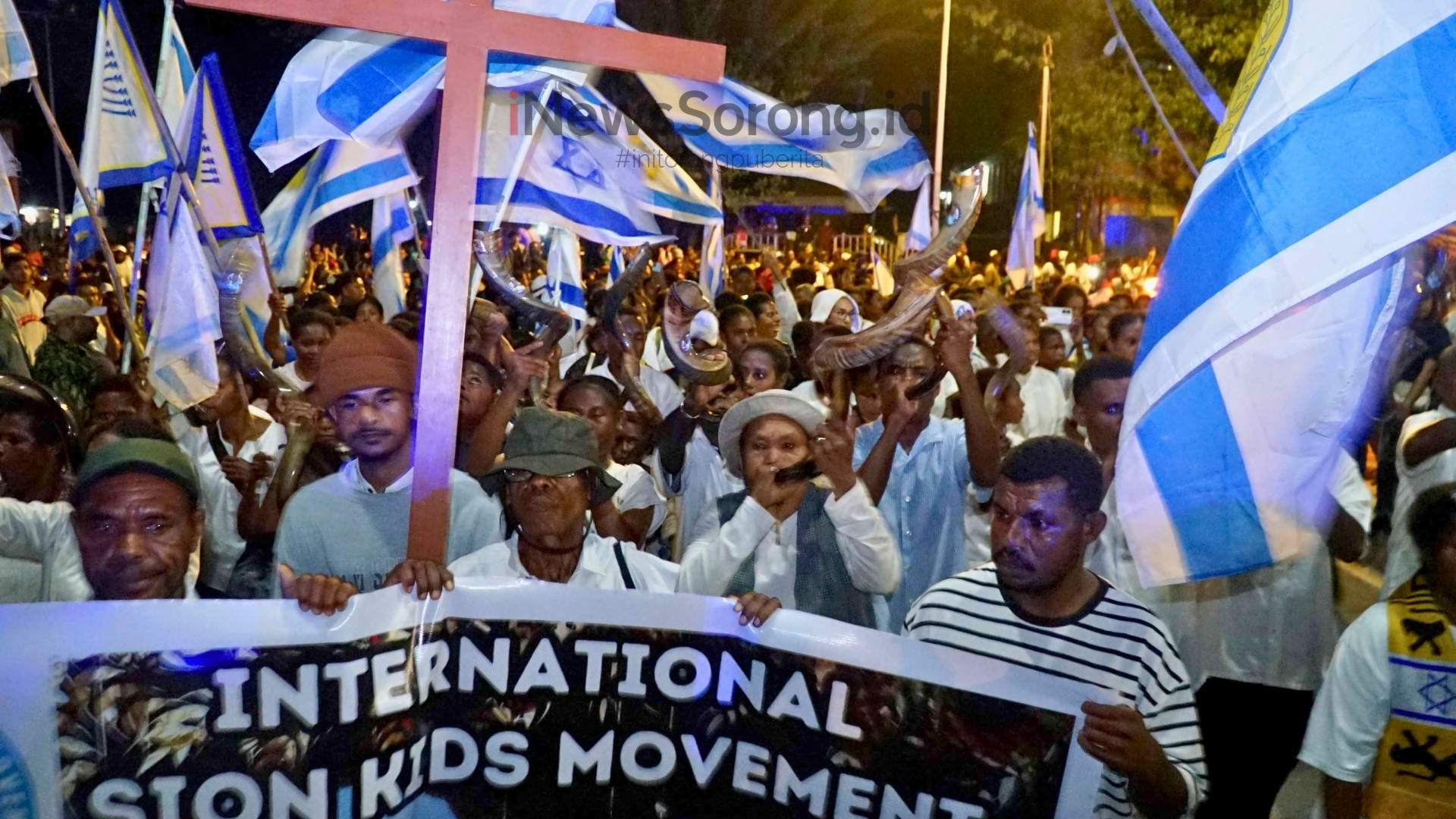 Fenomena yang turut mencuri perhatian adalah hadirnya ratusan bendera Israel serta tiupan sangkakala yang mengiringi langkah peserta, memperkaya ekspresi iman dalam perayaan tersebut.